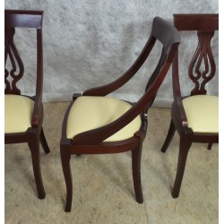 Mahagonipuust toolid. Istmetel täisnahk. Heas korras.